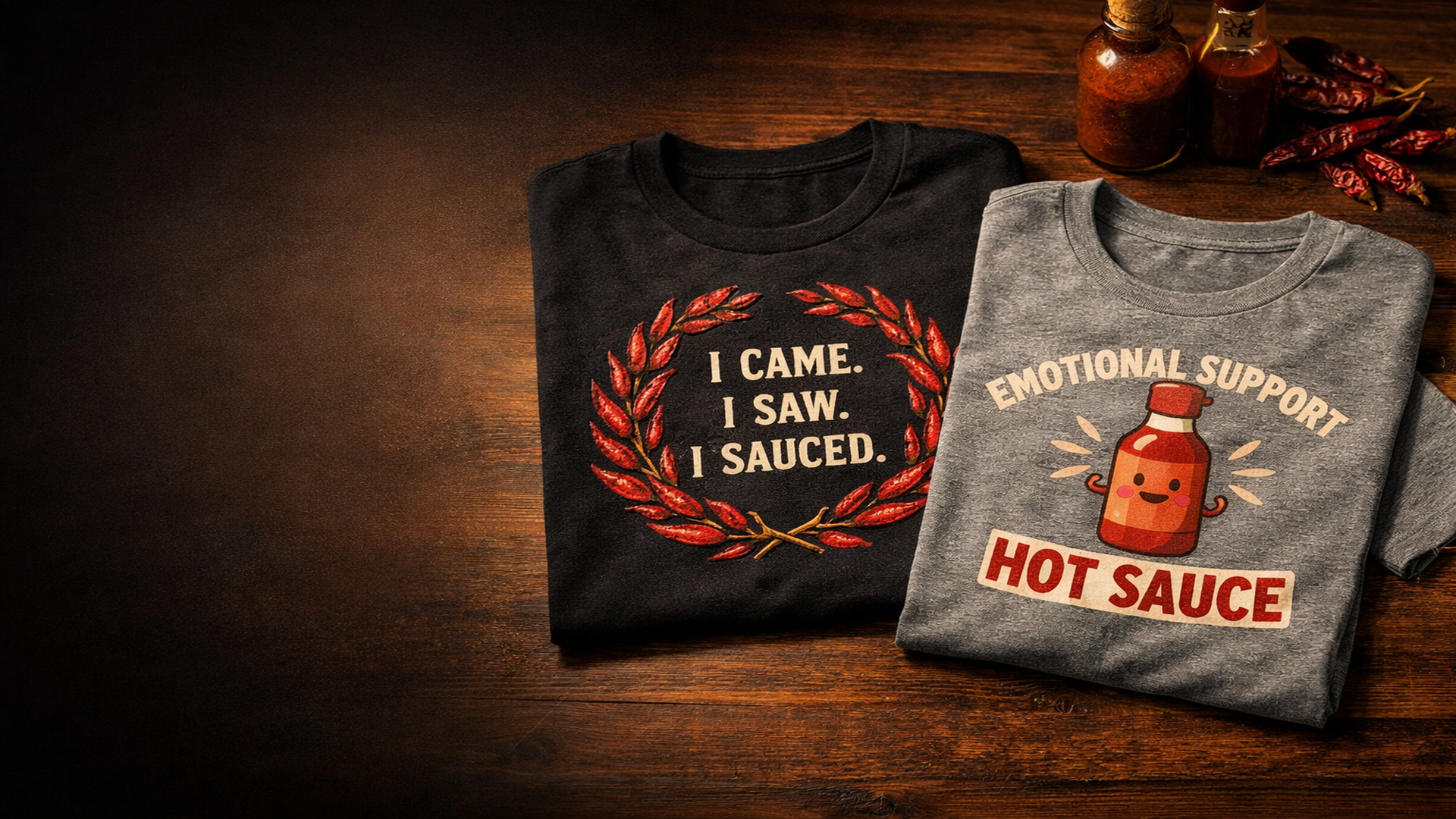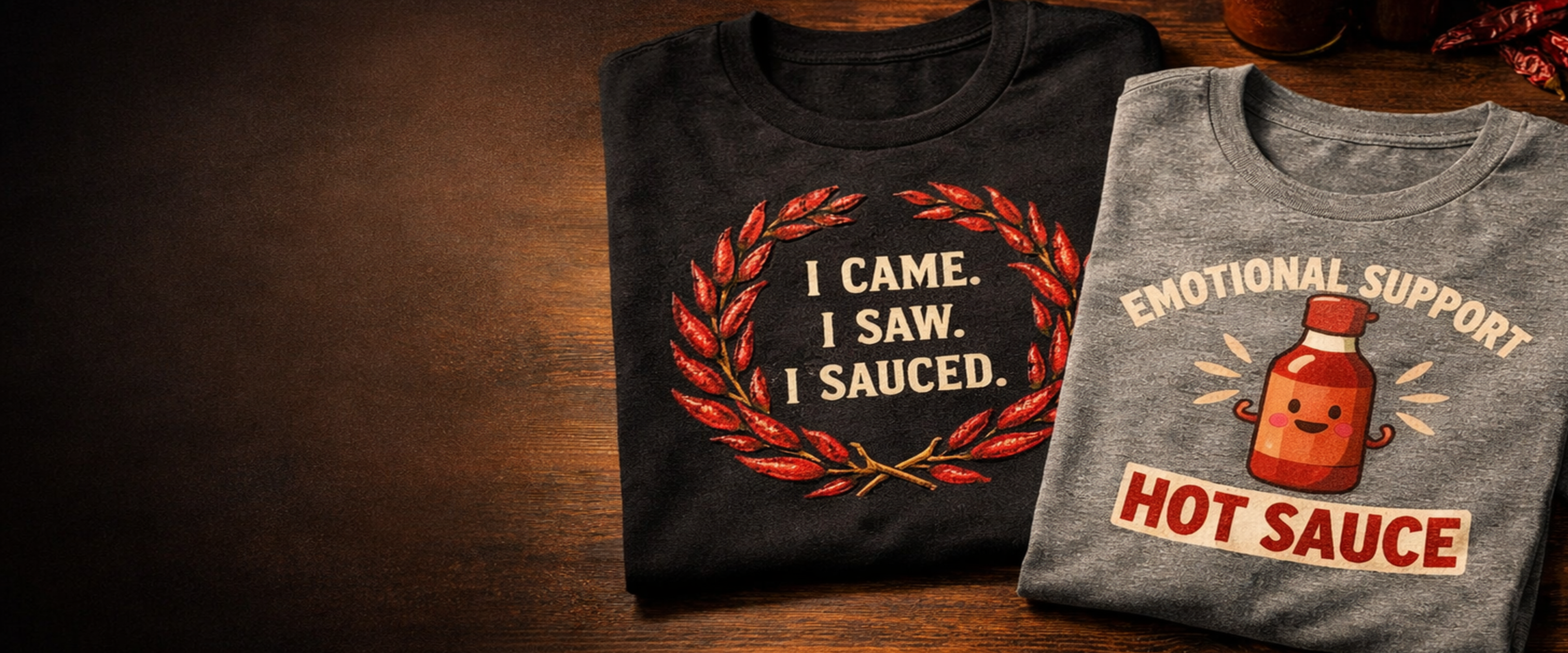 Right here in the USA — every TSC tee is printed and shipped domestically so your order arrives fast and fresh. No overseas warehouses, no mystery wait times. Just quality you can count on, from people who take hot sauce (and good tees) seriously.